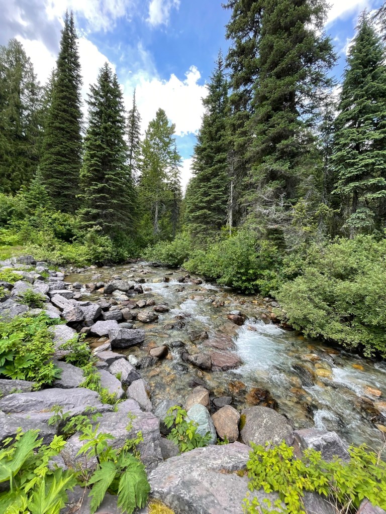 During my planning for this trip, today was going to be a shorter mileage day of riding due to the unknown duration of the border crossing. Since the crossing was actually a total nonevent, I decided to get some extra miles in and get a start on the climb up Whitefish Pass to make tomorrow’s ride to Whitefish a little more manageable. I literally rode to where the pavement ends and we are now in a primitive campsite adjacent to Clarence Creek. Erin is in her hammock, a deer just walked by behind her, and the kids are about to be taken on a walk down to the creek. Don’t worry, we have bear spray and the kids make plenty of noise.