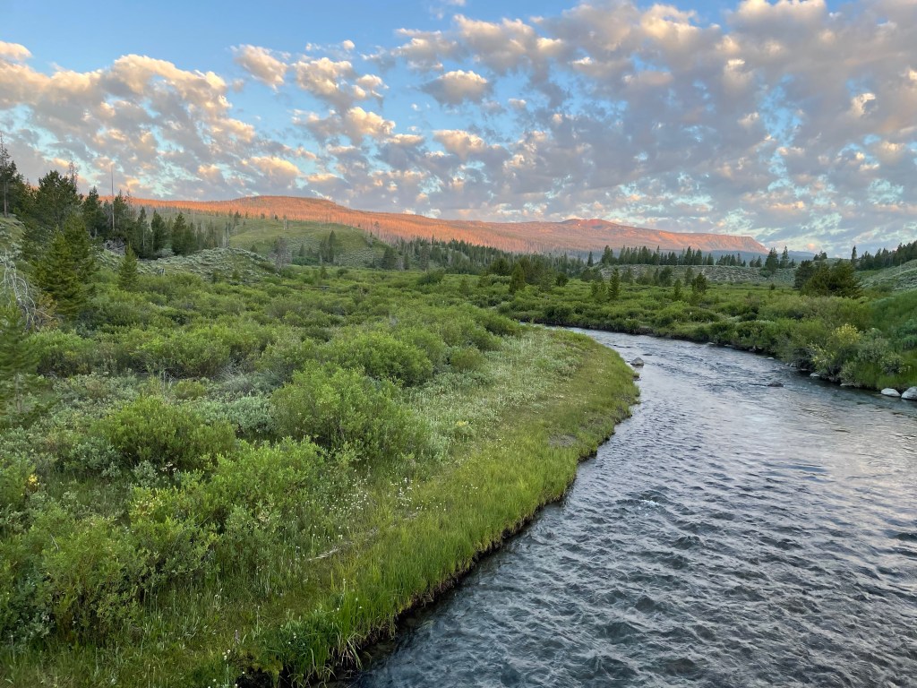 It was a clear night last night and the morning air was crisp as I bombed down most of the remaining downhill from Togwotee Pass before making a right turn to start the long climb up to Union Pass. The range of temperatures in the summer in the high mountains is remarkable.