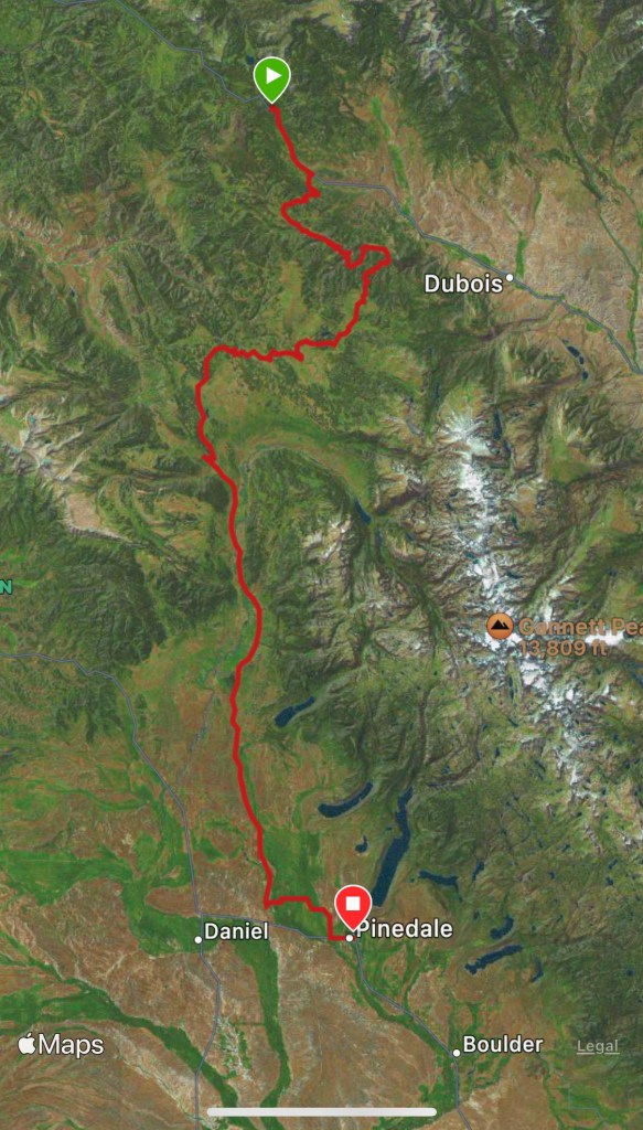 The plan today was to make it to a campsite that would put me close to Pinedale. Once looking at the profile view for tomorrow’s ride again last night, I knew it would then be a relatively short day into Pinedale the following day.