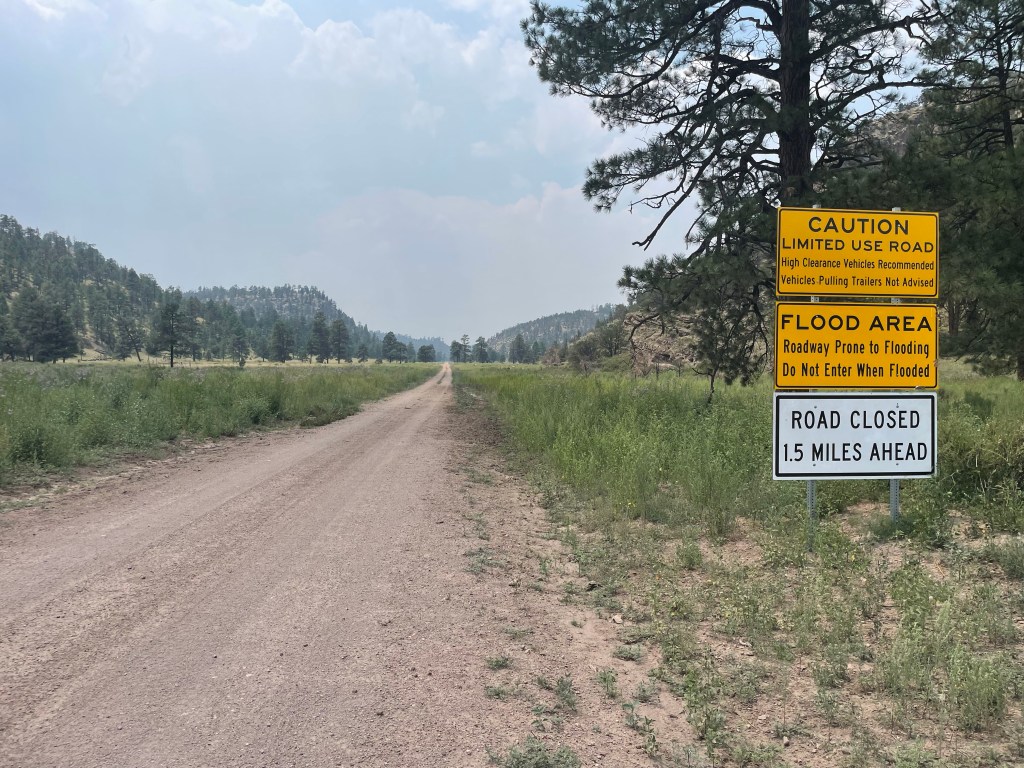 The informal campsite is at the opposite end of the road closure and according to a local rancher, that should be the worse of it as far as road conditions and the smoke smell is from controlled burns. That takes away a couple worries and of course I consulted the boss lady and she gave me all the fire reports for the surrounding area since I do not have the interwebs out here.