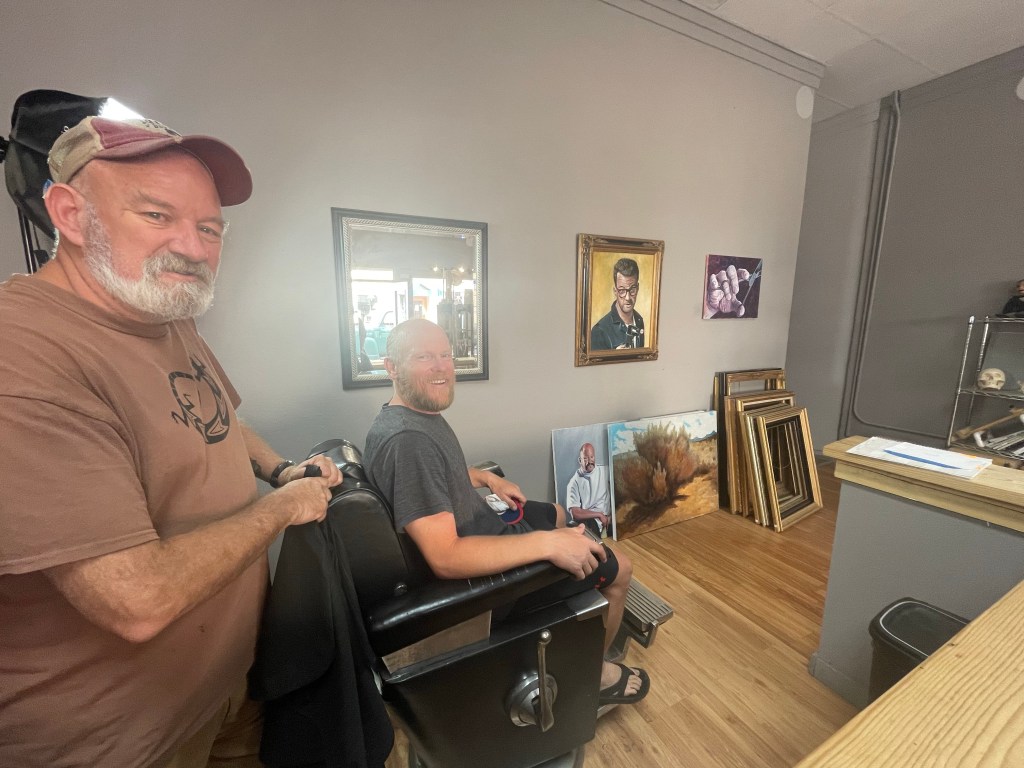 Now his artwork is being sold at a couple galleries and he just returned from Italy where he received some formal training for the first time. He says now the artwork pays the bills and the haircuts pay for his lunch.