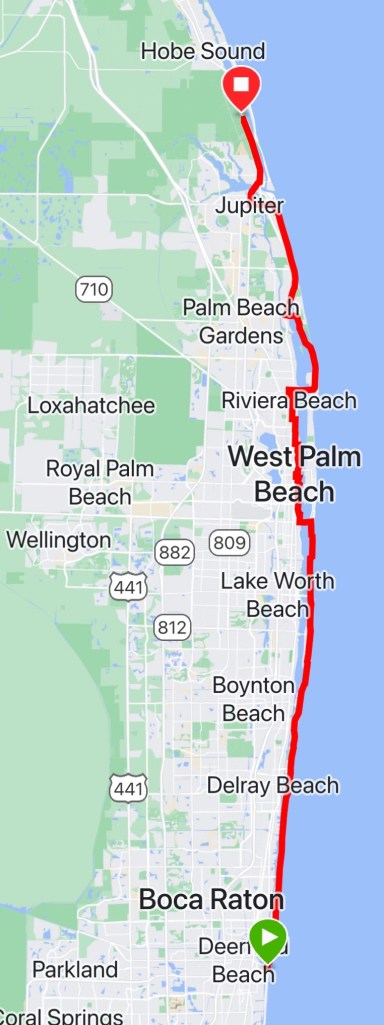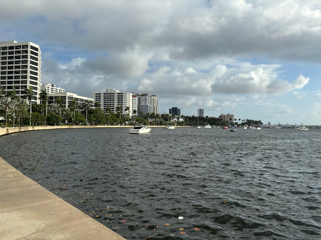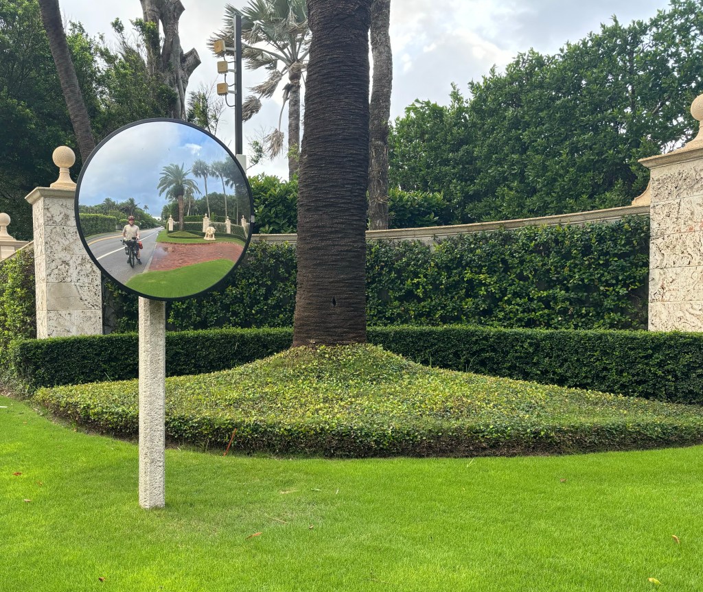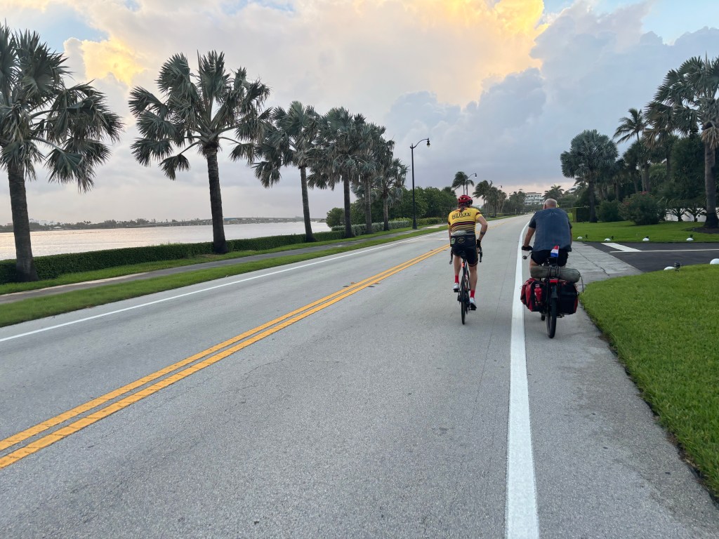 Soon, we were making a left turn to go over a bridge across the Lake Worth Inner Channel to take us to West Palm Beach when I see a US Secret Service mobile security booth. Hmm. Could this be what I think it is? A quick map check and it looks like we are indeed riding past Mar-a-Lago. The number of secret service vehicles was interesting as they were parked in over watch positions in the lawn. One zipped by us on the bridge and then circled back after we started moving along. Perhaps they were checking out the camera crew setting up for a live shot from the bridge.