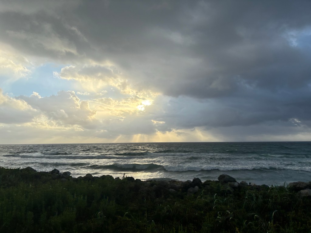 We departed this morning in darkness and enjoyed a cooler morning with some periodic rain that felt like a warm shower. The air after the rain felt like stepping out of a hot shower with the bathroom door closed, muggy would be the correct term I suppose. We did enjoy a beautiful sunrise with waves crashing into the beach as we traveled back and forth between the beach and more palatial residential areas.
