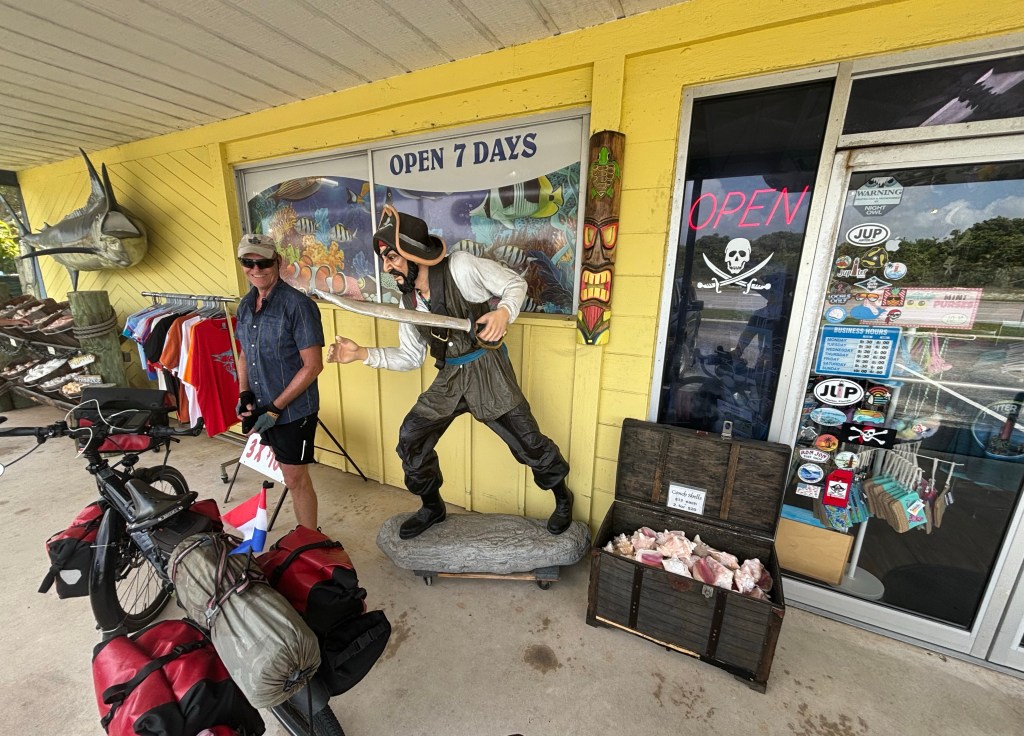 Today was our easiest day cycling so far as the temperature was cooler and the winds were more favorable. We soon turned off the A1A and made it up U.S. Route 1 to our campsite by lunchtime and are sitting in the registration office in the air conditioning waiting for our campsite to become available. Another great day!