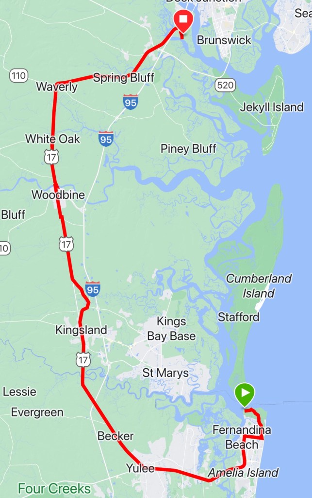 Day 10. Fort Clinch State Park to Blythe Island Regional Park Campground.