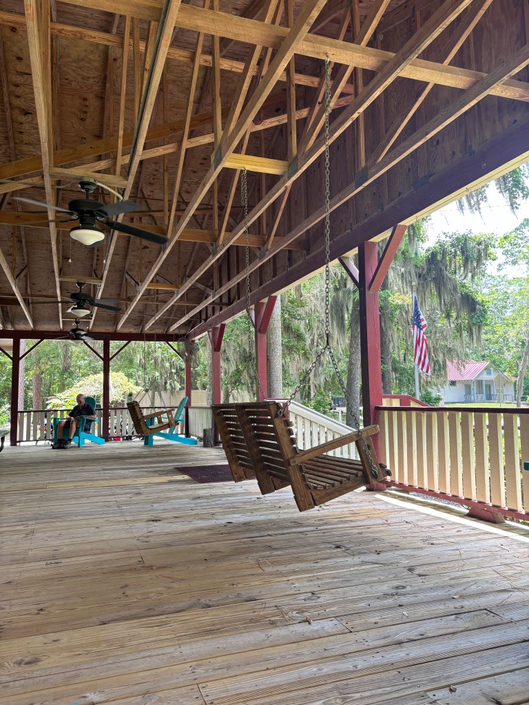 We made it to our destination and here we sit on a big ol’ porch writing our blogs after a great conversation with a retired Army turned Air Force Veteran. Just another day in the South waiting on some late afternoon rain to come.