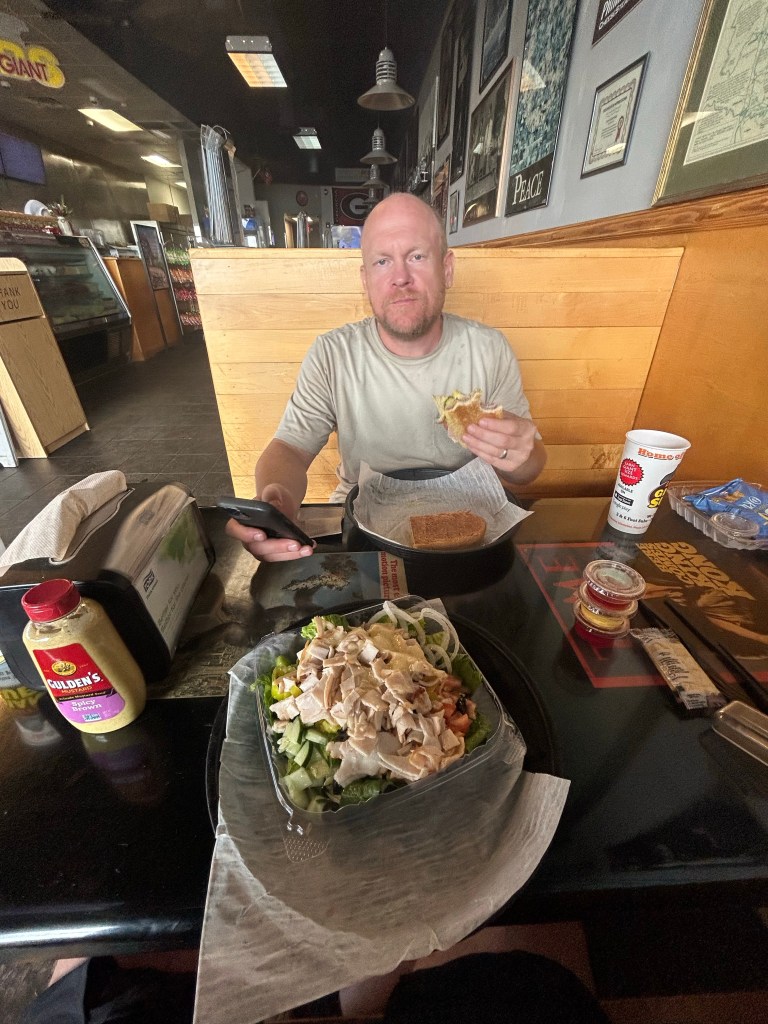 After Folker made a quick stop at a Winn-Dixie a little on down the road, we decided to get some proper food at Larry’s Giant Subs where I had the Cuban Sub Sandwich. I have to admit it was the first time I felt cold since we started. They had the air conditioning set to super cool and refreshing apparently.