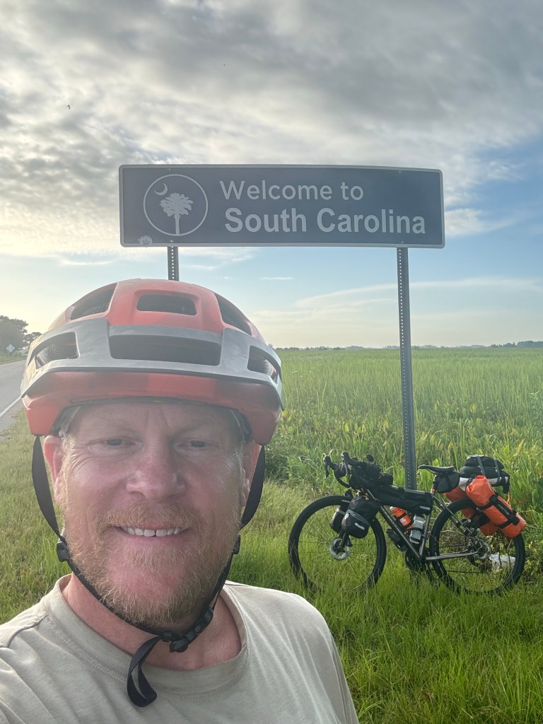 Georgia was very courteous to us two as we quickly passed through the southeastern portion of this beautiful state. I forgot to mention that at the Georgia welcome sign I was able to get a truck driver to honk his horn playing the same game I played on the TransAmerica Trail. And it just so happened I would have another willful participant honk their truck horn for me at the South Carolina welcome sign. Twofer!