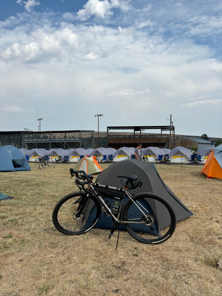 I arrived this afternoon and set up my tent close to those enjoying the tent and porter service offered. I was happily one of them five years ago during the Cycle Oregon Classic. I figured I am pretty familiar with using my own tent these days and it would feel like cheating on my camping gear if I chose to dance with another partner out here in Eastern Oregon. Guess I am the guy from the other side of the tracks now, or perhaps the other side of a cow paddy.
